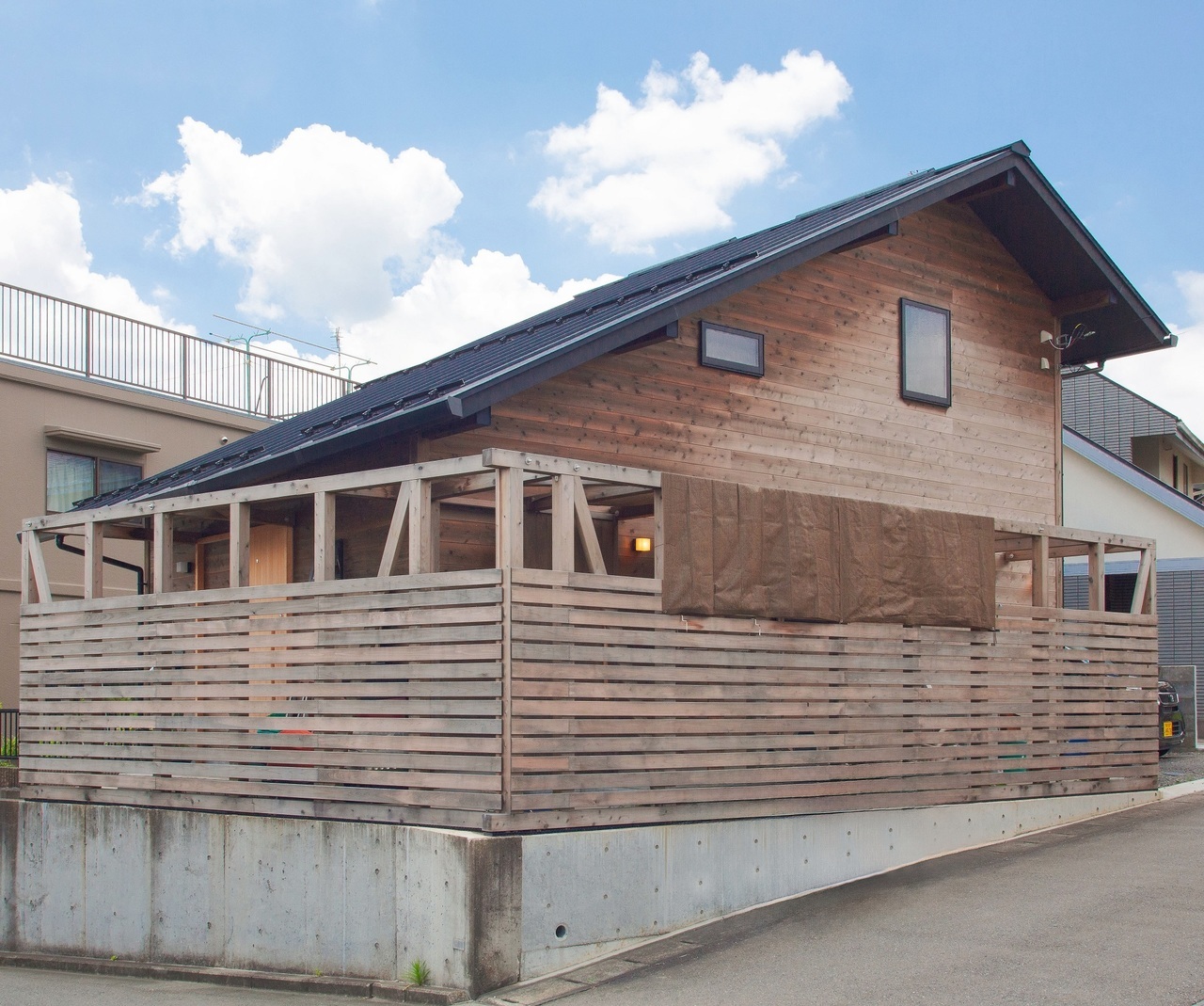 屋根:屋根:ガルバリウム鋼板/外壁:杉板下見張り
