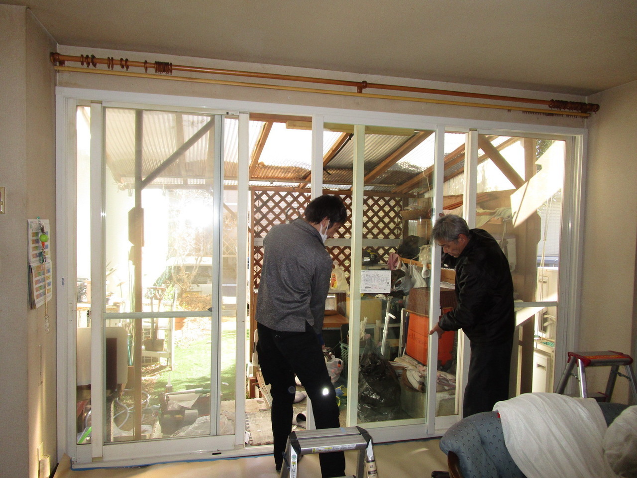 ルーバー窓に引き違いの内窓を取り付けました。
