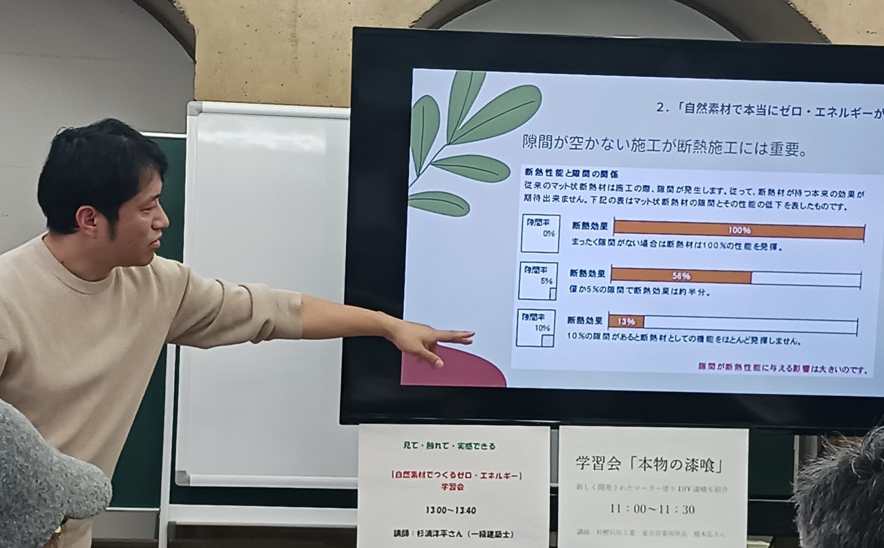 昨年12月6日(土)に開催した「冬の住まい展」のなかで、一級建築士:杉浦洋平さんを講師に標記の学習会を行いました。